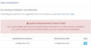 四、将WHMCS解压上传到你的网站根目录,然后打开网址开始安装。如果没有配置文件,WHMCS会提示你让你修改。
